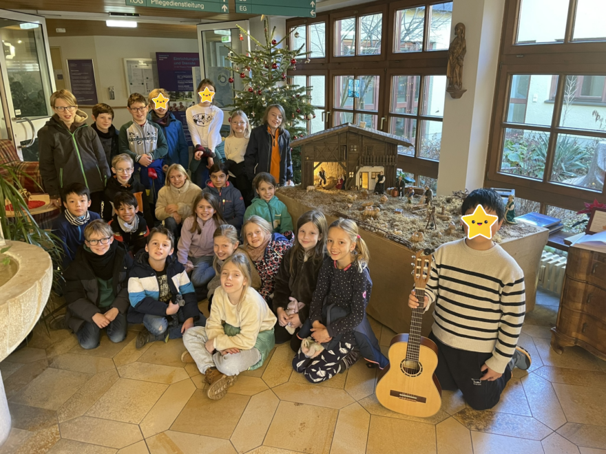 Die Klasse 3/4a mit Frau Kaiser und Frau Rieber besuchte am Mittwoch, den 10.12., das Altenheim Puchheim. Die Kinder brachten viele übrig gebliebene Basteleien und Plätzchen vom Weihnachtsbasar mit und sangen gemeinsam Weihnachtslieder.