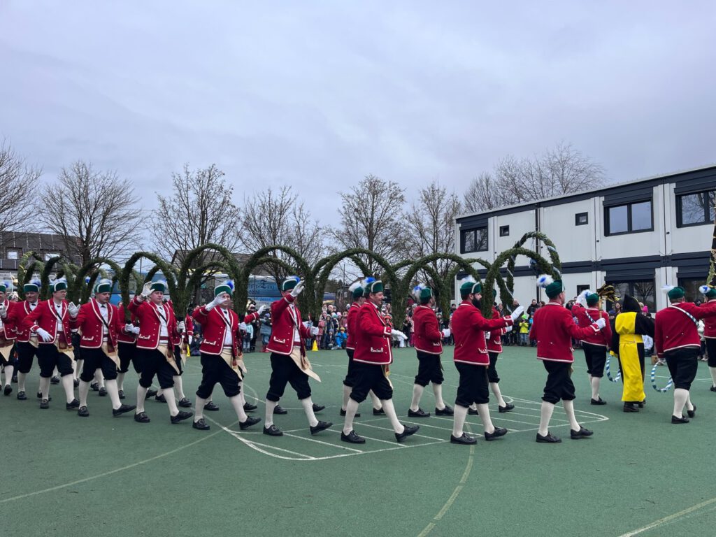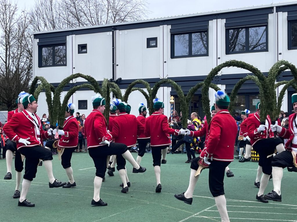 Heute war ein ganz besonderer Tag am Gernerplatz: Die berühmte Münchner Schäffler-Tanzgruppe war zu Gast an unserer Schule! Knapp 500 Kinder versammelten sich pünktlich und voller Vorfreude auf dem Sportplatz, um die traditionsreichen Tänzer in ihren roten Jacken zu begrüßen.